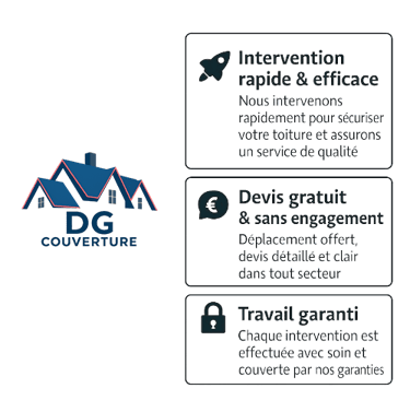 Chez DG Couverture, nous mettons un point d’honneur à offrir un travail soigné, un service réactif et des devis gratuits.